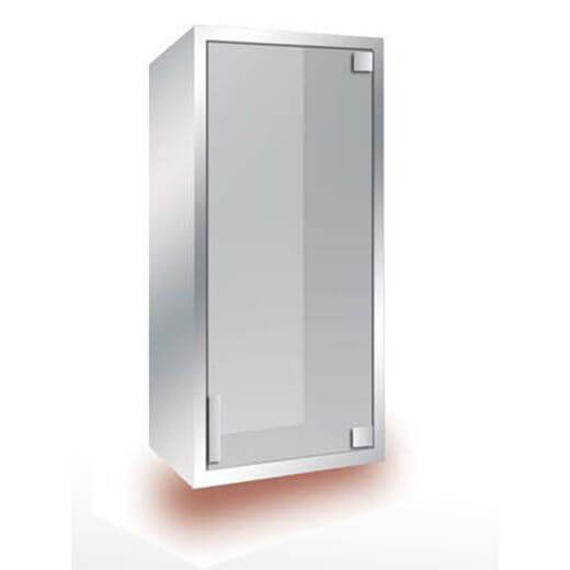 Caixa metálica para colocar a superfície ou para encastrar formada por módulo de extinção com porta em acrílico.